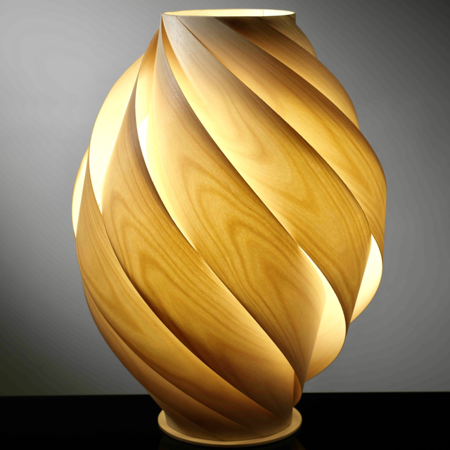 Lampe à poser, en plaquage bois de bouleau avec un cordon en lin. Hauteur 35cm